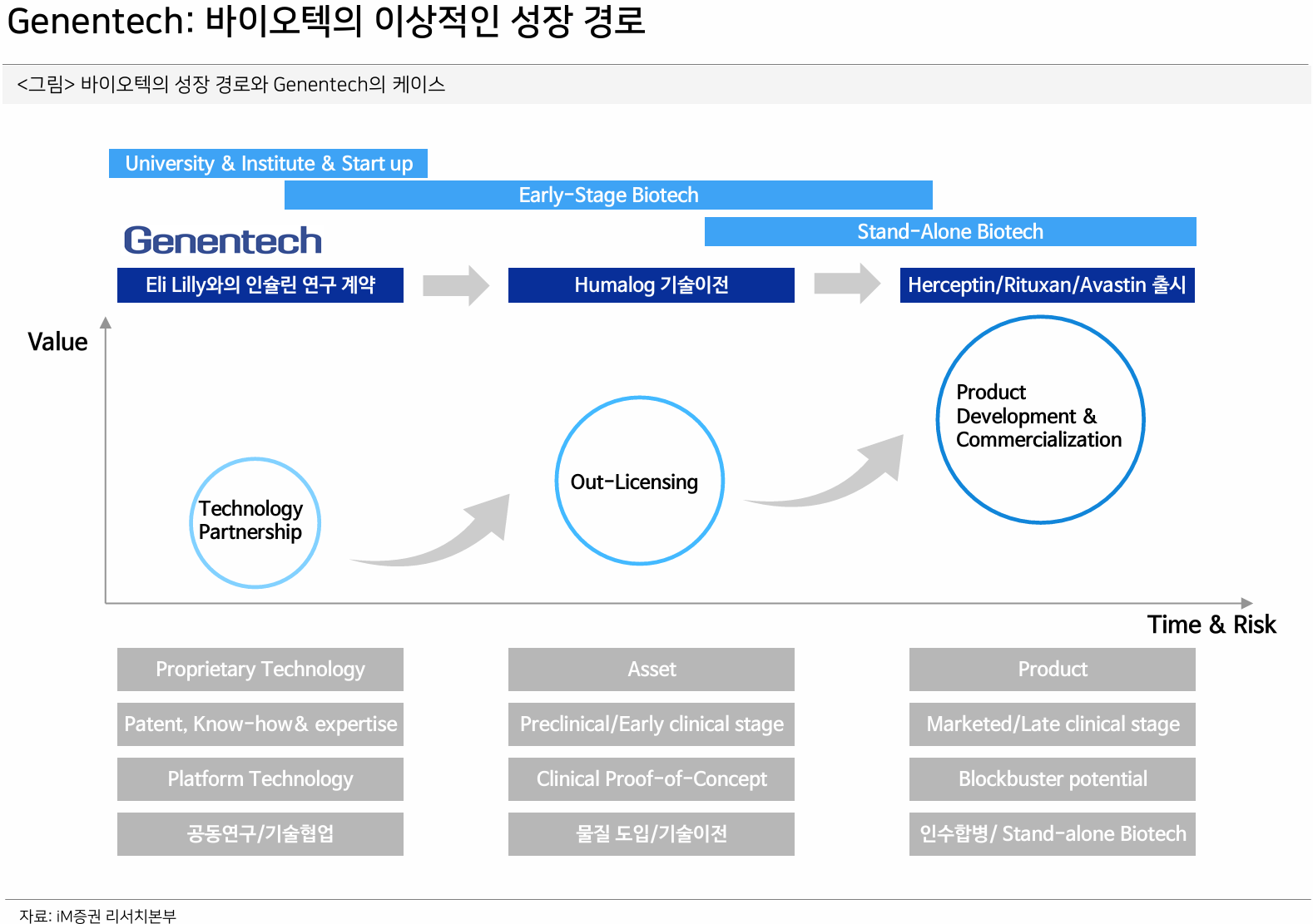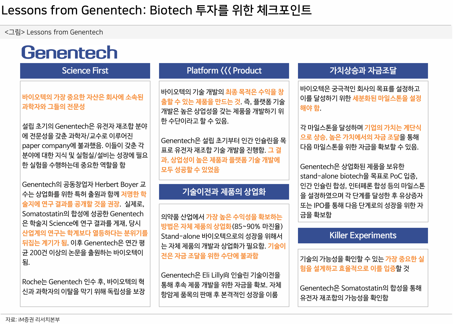 많은 바이오텍이 기술 플랫폼 개발에만 집중하는 반면, 제넨텍의 창업자들은 궁극적인 목표가 시장성 있는 제품 창출임을 이해했습니다