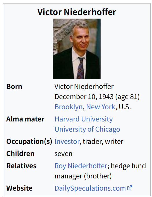 빅터 니더호퍼는 미국의 저명한 헤지펀드 매니저이자 스쿼시 챔피언, 베스트셀러 작가, 통계학자로서 금융 시장에 독특한 접근 방식을 가져온 인물입니다