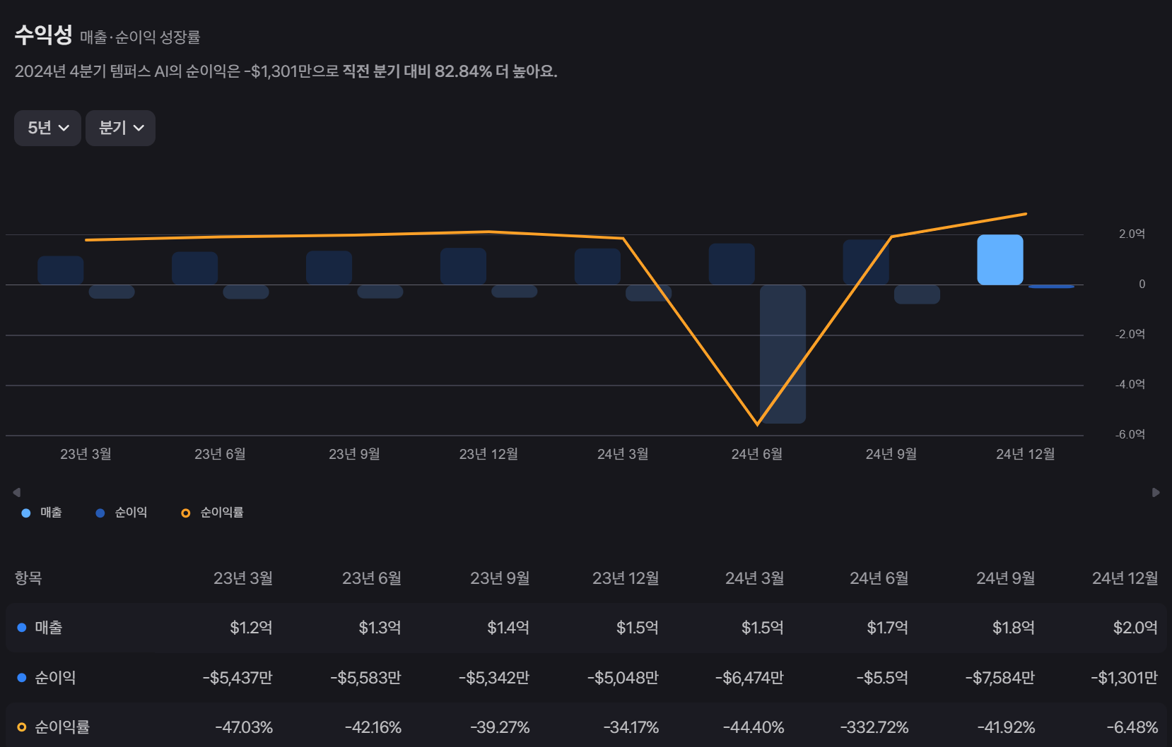 템퍼스 AI의 재무적 성과는 지속적인 성장세를 보여주고 있습니다