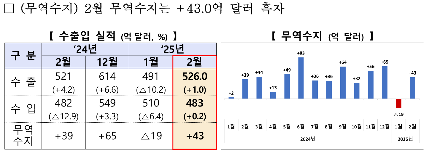 안덕근 산업통상자원부 장관은 "2월에는 1월 주춤했던 수출이 반등하면서 수출 플러스와 무역수지 흑자를 동시에 달성했다"고 평가했습니다