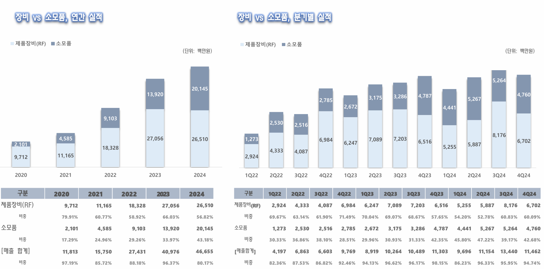 - 장비 판매: 매출의 66% 차지