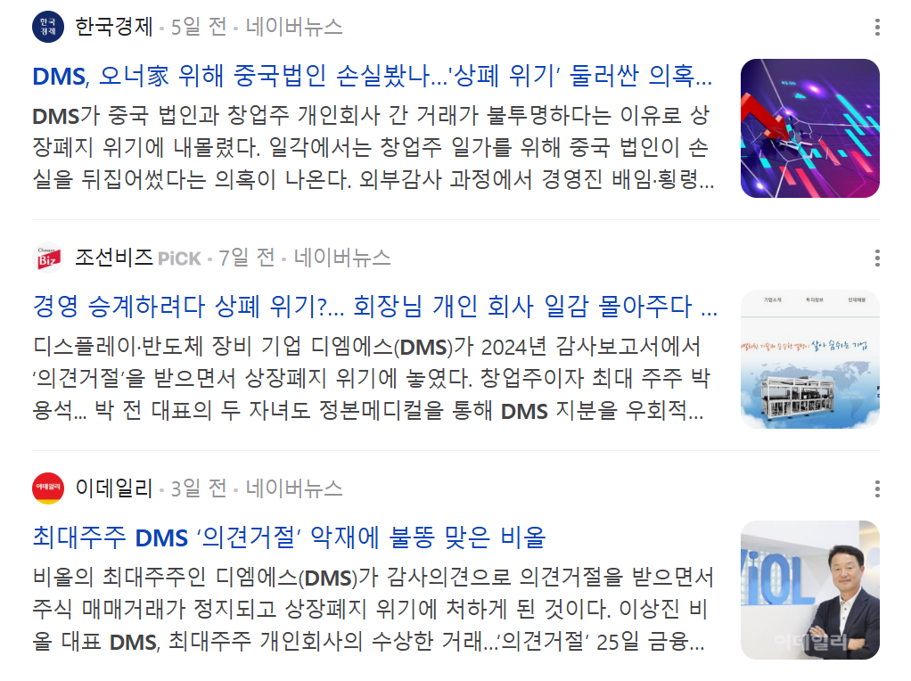 그러나 최대주주인 DMS의 상장폐지 우려와 관련된 불확실성은 단기적으로 주가에 부담으로 작용하고 있습니다