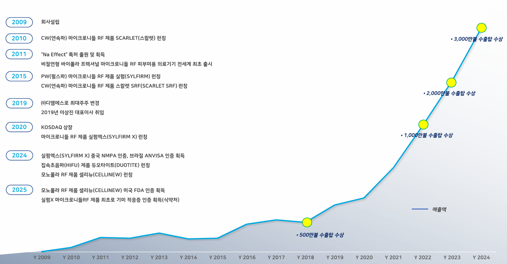 - "마이크로니들 RF 제품인 스칼렛, 실펌엑스에 이어 셀리뉴, 듀오타이트를 통해 내년까지 글로벌 피부미용 의료기기 '톱5' 회사로 성장할 것"이라는 명확한 비전 제시