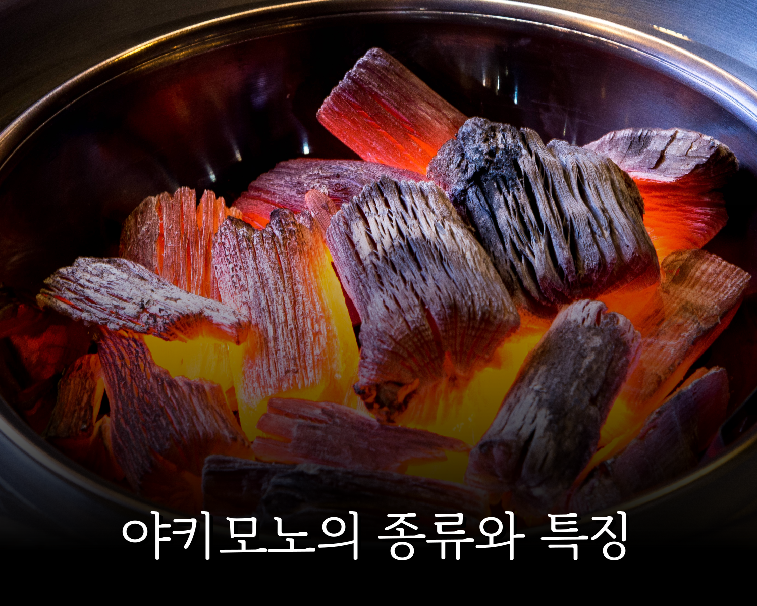 야키모노에서 가장 전통적인 열원은 비장탄(일본 백탄)으로, 깨끗하게 타서 불필요한 맛을 더하지 않는 장점이 있습니다