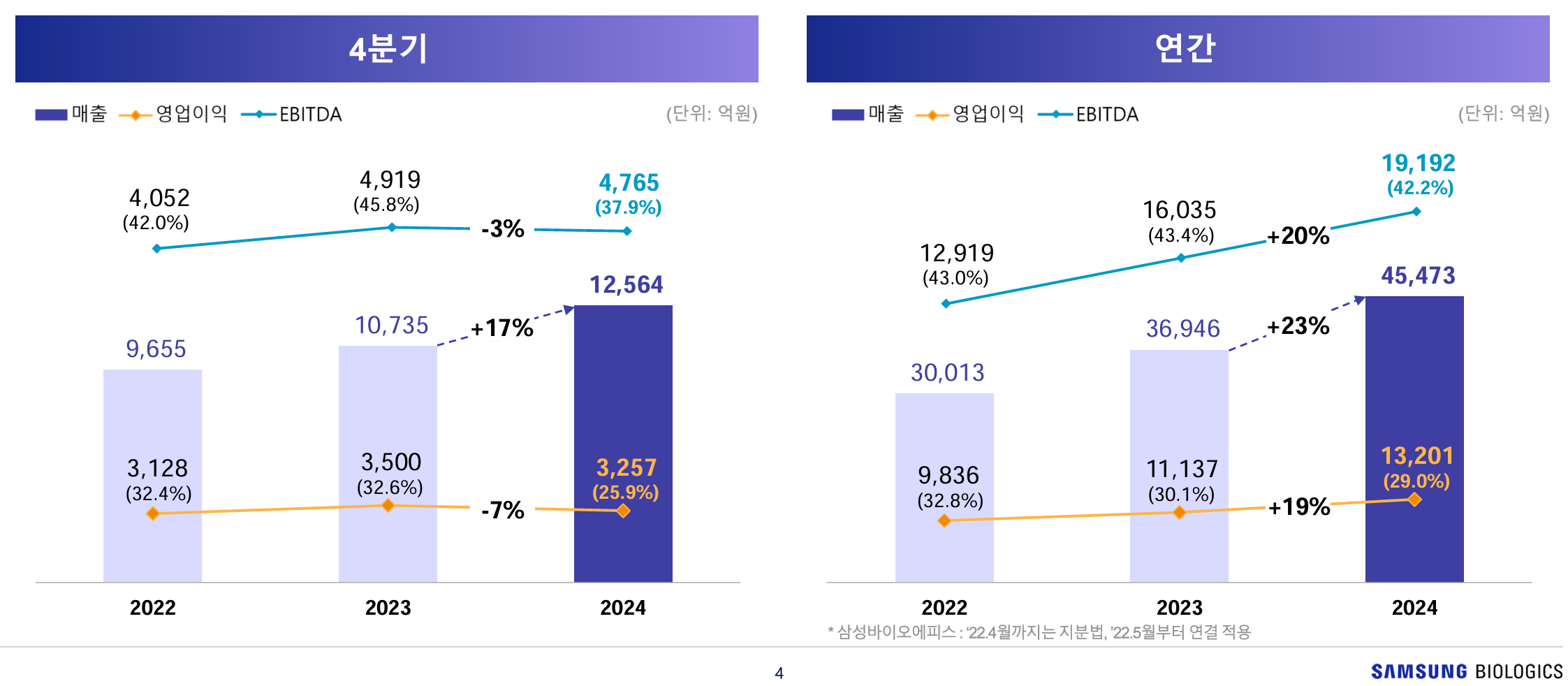 - 매출 성장: 4공장 가동률 상승 및 우호적 환율 환경으로 2024년 매출 가이던스를 당초 10~15%에서 20%까지 상향 조정