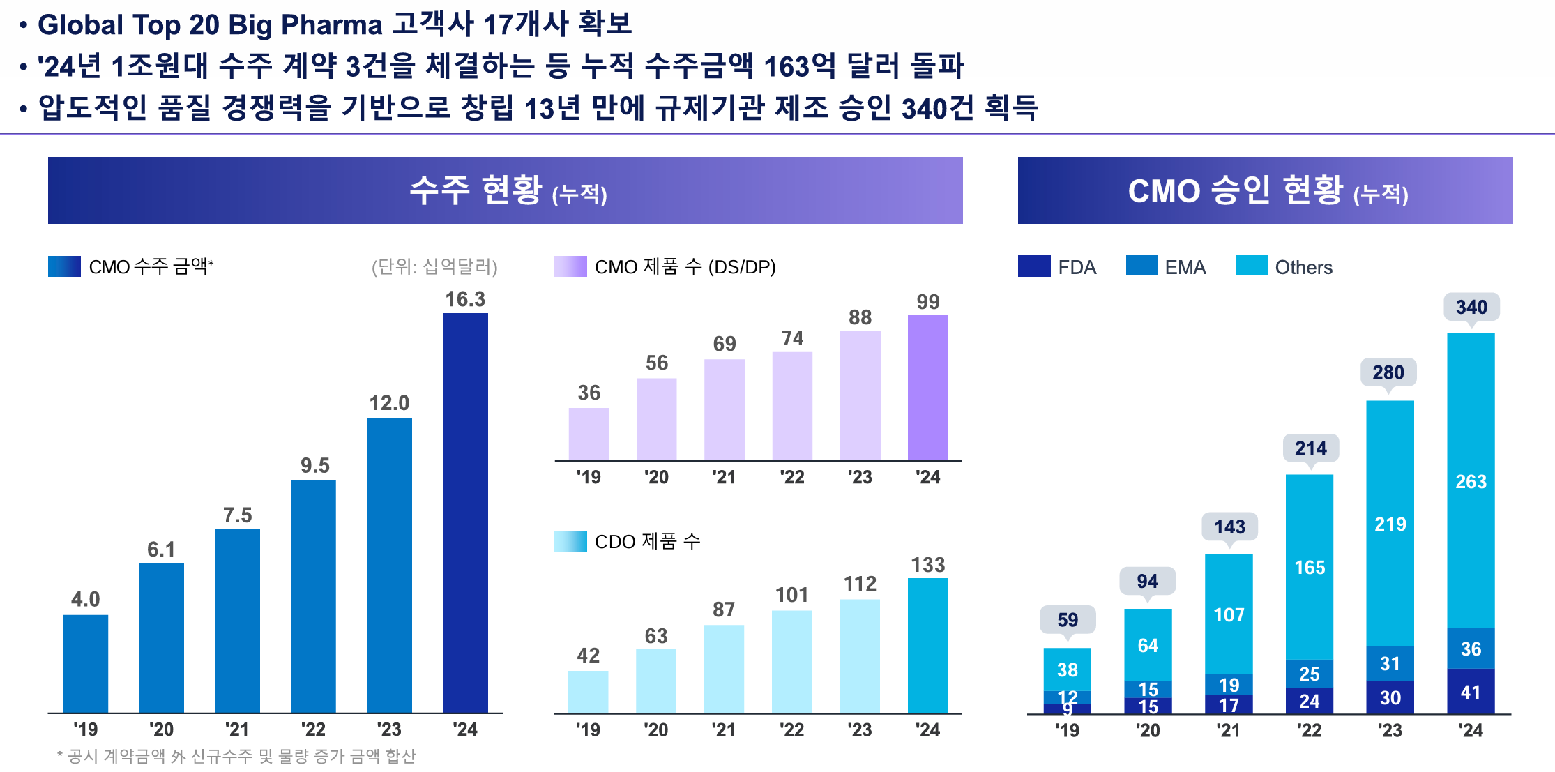 - 글로벌 제약사들과의 대규모 계약 체결(1조 7,028억원 규모의 초대형 CMO 계약 등)