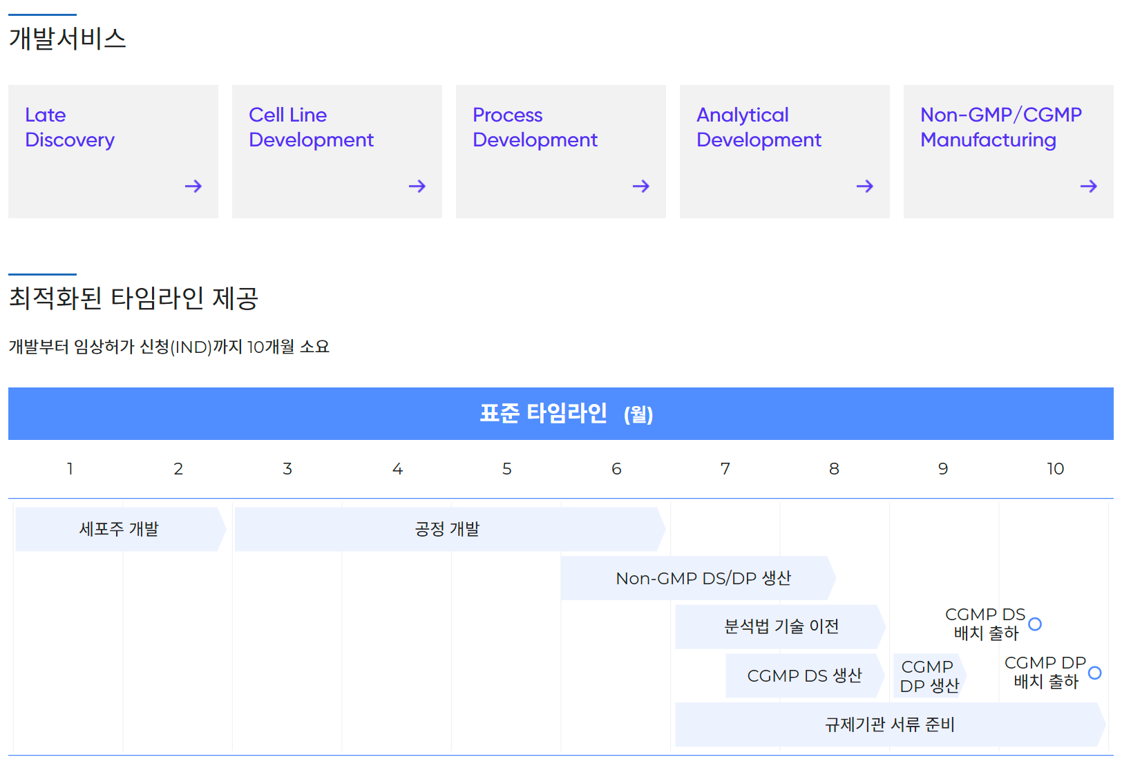 - 바이오의약품의 초기 개발부터 임상 및 상업생산까지 전 과정을 아우르는 End-to-End 서비스 제공