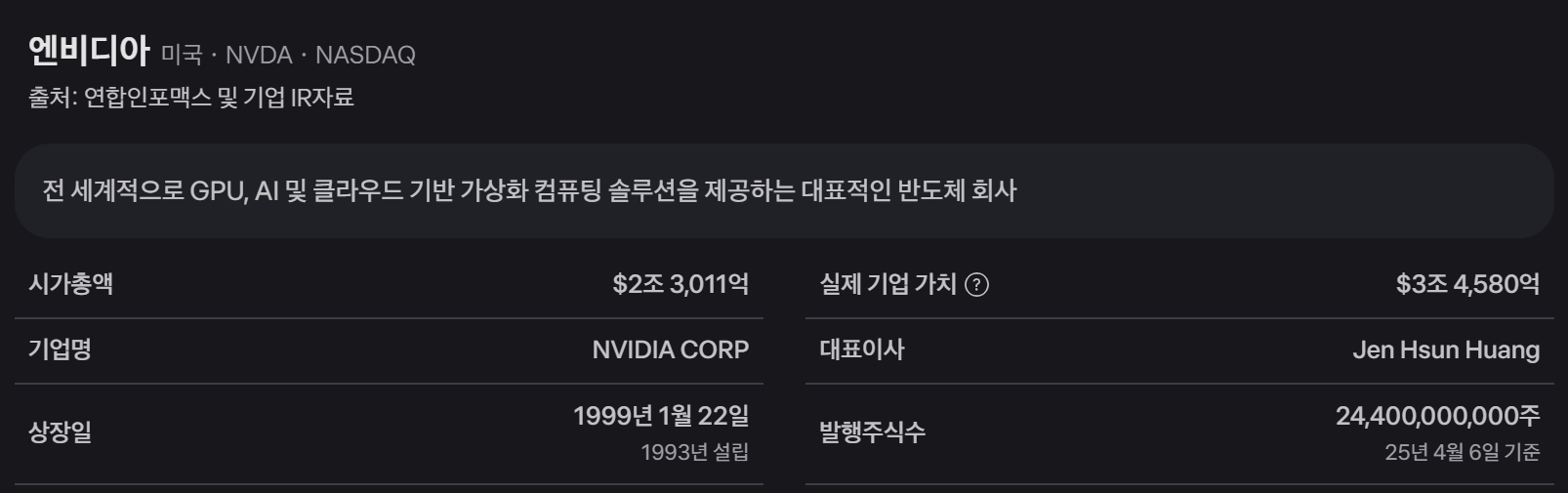 - AI 시장에서의 압도적인 기술적 리더십과 시장 점유율(95%)을 보유하고 있습니다