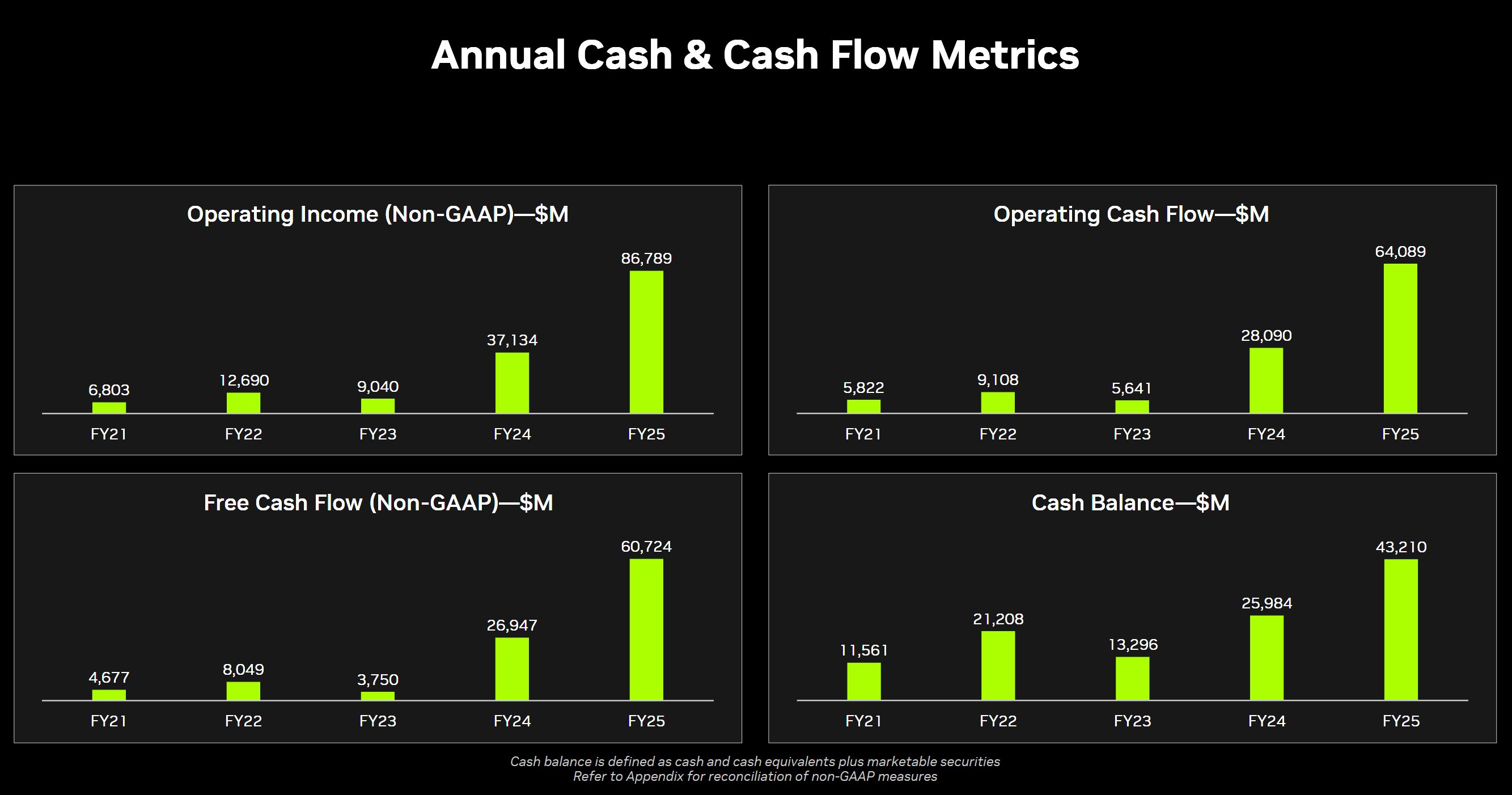 - 현금 및 현금성자산: $43.2B (2024년 1월 대비 66% 증가)
