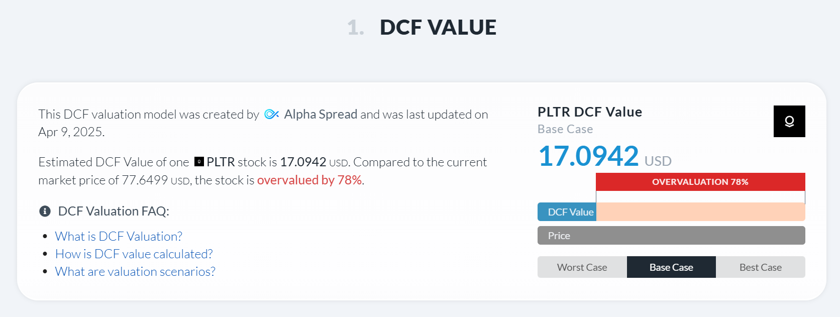 - 미래 현금흐름 예측의 불확실성이 크며, 특히 팔란티어와 같은 고성장 기업의 경우 더욱 그렇습니다