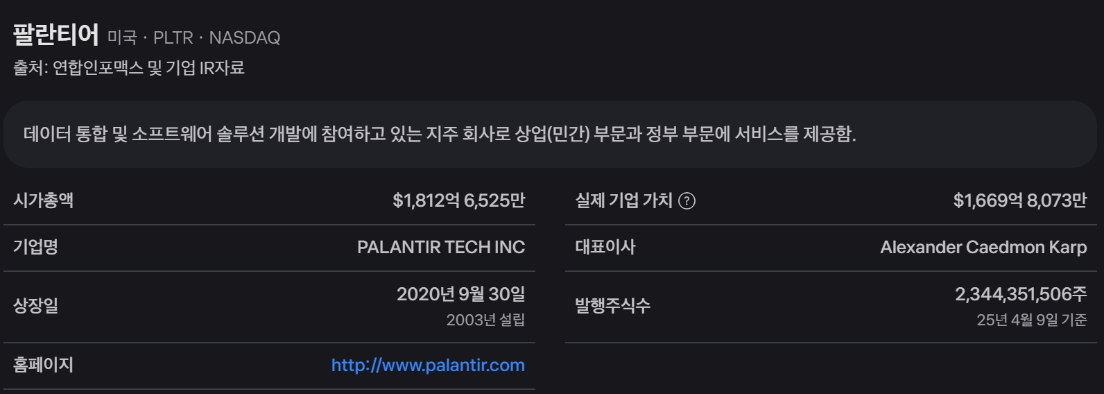 팔란티어 테크놀로지(PLTR) 기업 분석 보고서