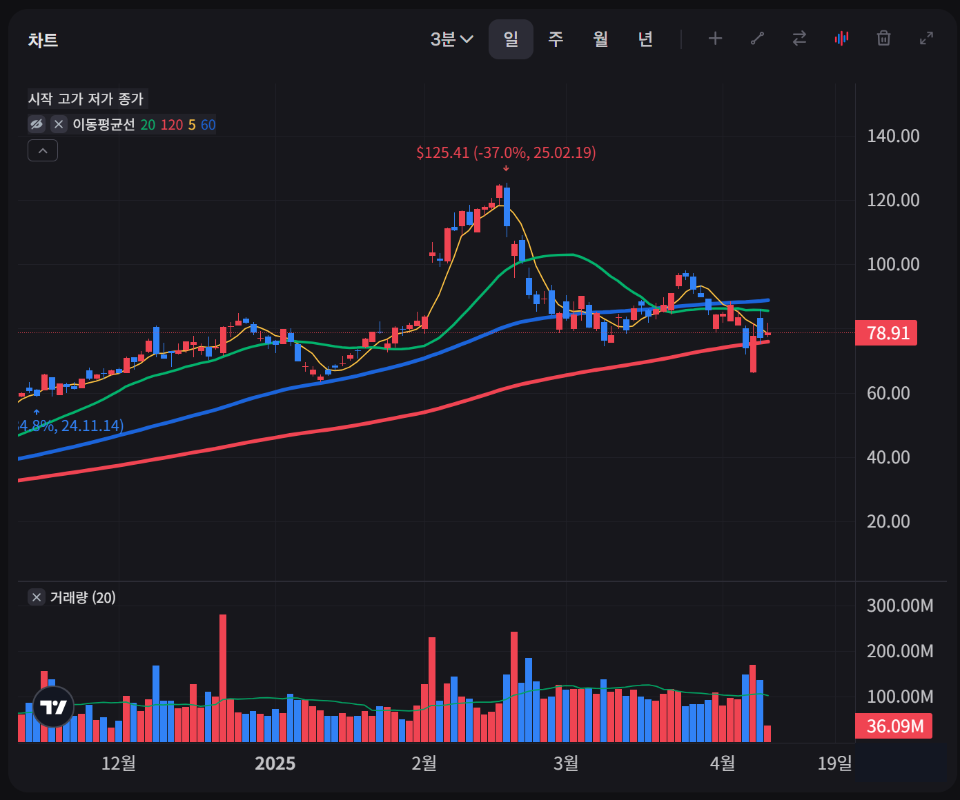 - 현재 단기 하락세 속에서 장기 상승 추세를 유지하고 있습니다