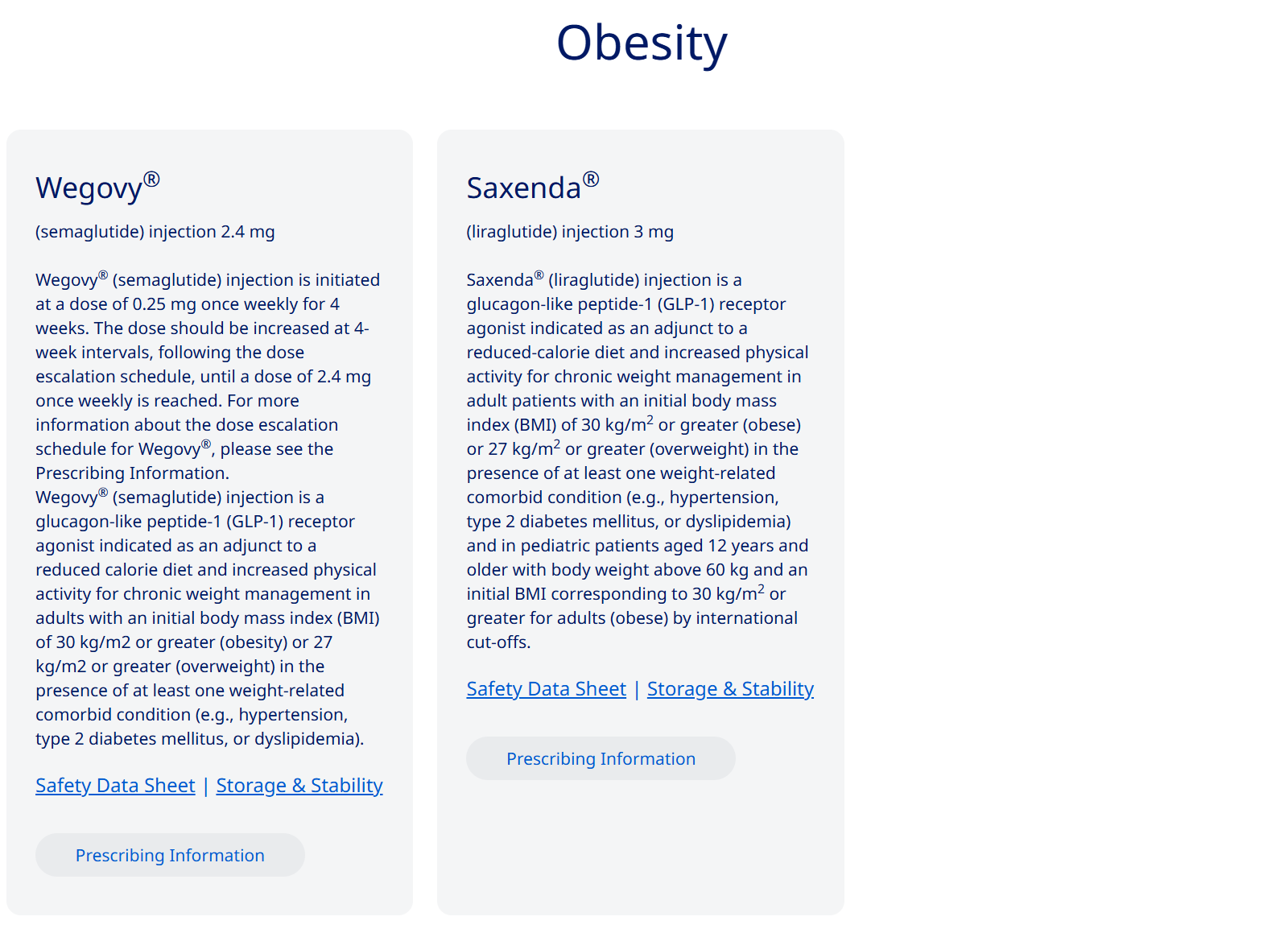 - Saxenda(리라글루타이드) - 임상시험에서 위약 대비 우수한 체중 감량 효과 입증