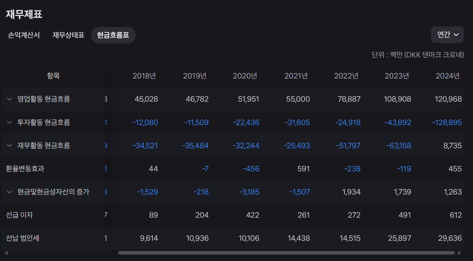 - 설비투자(CAPEX): 472억 DKK, 2023년 258억 DKK 대비 83% 증가
