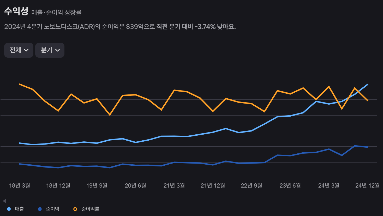 - 가격 압력: 노보노디스크는 2025년 전망에서 "당뇨병 및 비만 케어 내 경쟁 심화 및 지속적인 가격 압력"을 언급했으며, 이는 수익성에 영향을 미칠 수 있습니다