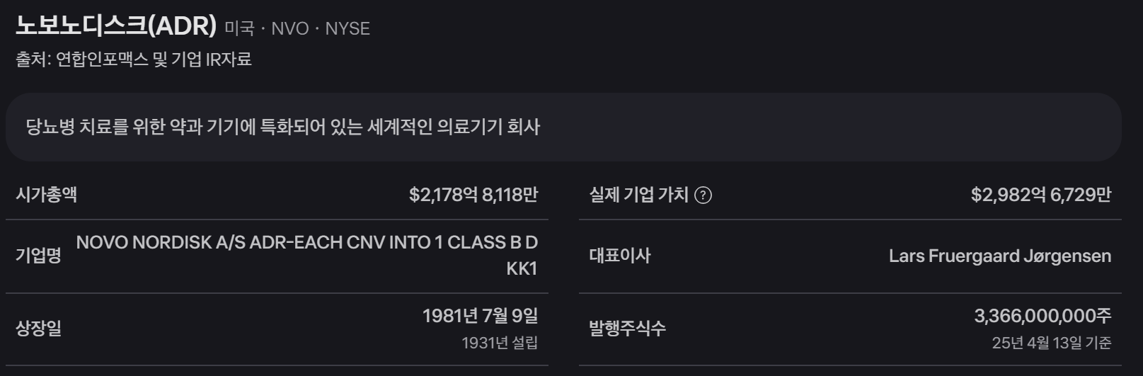 노보노디스크는 100년 가까운 역사를 가진 덴마크 기반의 글로벌 제약 기업으로, 당뇨병 치료 분야에서 세계적인 리더십을 보유하고 있습니다