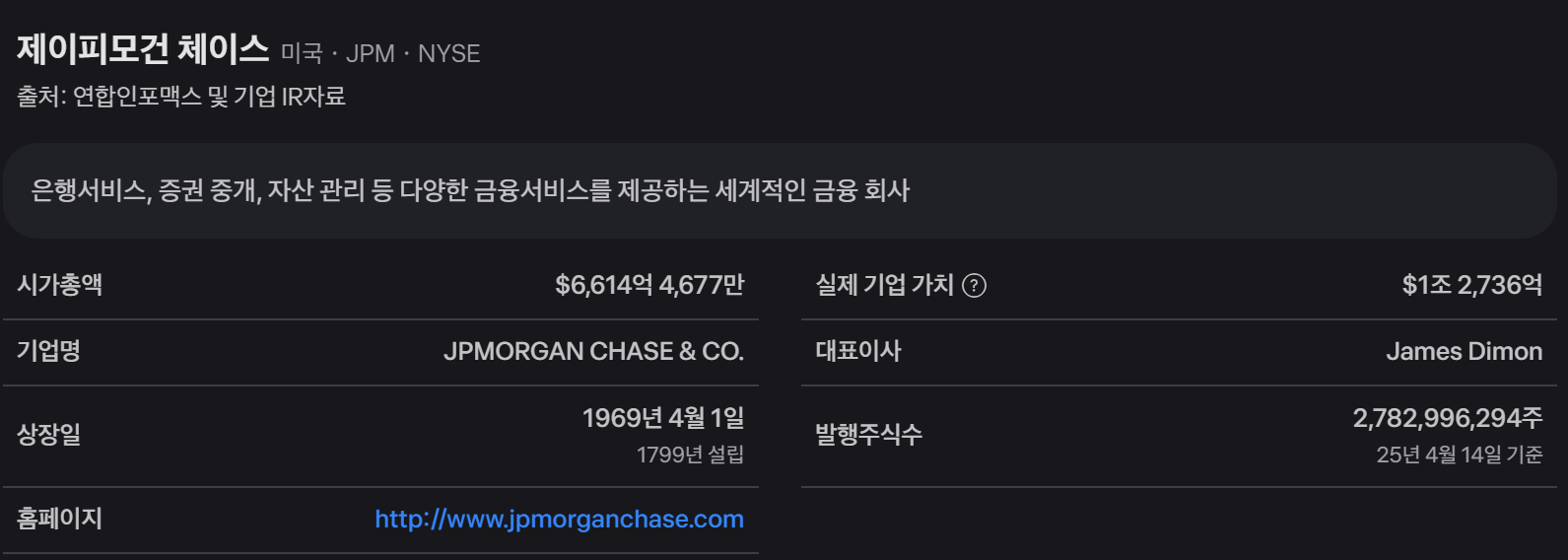 제이피모간 체이스(JPM) 기업 개요