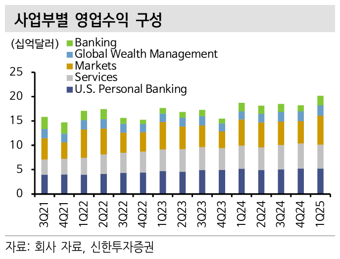 - Markets(유가증권): 순수익 60억 달러(+31%), 주식(+37%)과 채권(+29%) 트레이딩 부문 모두 강세