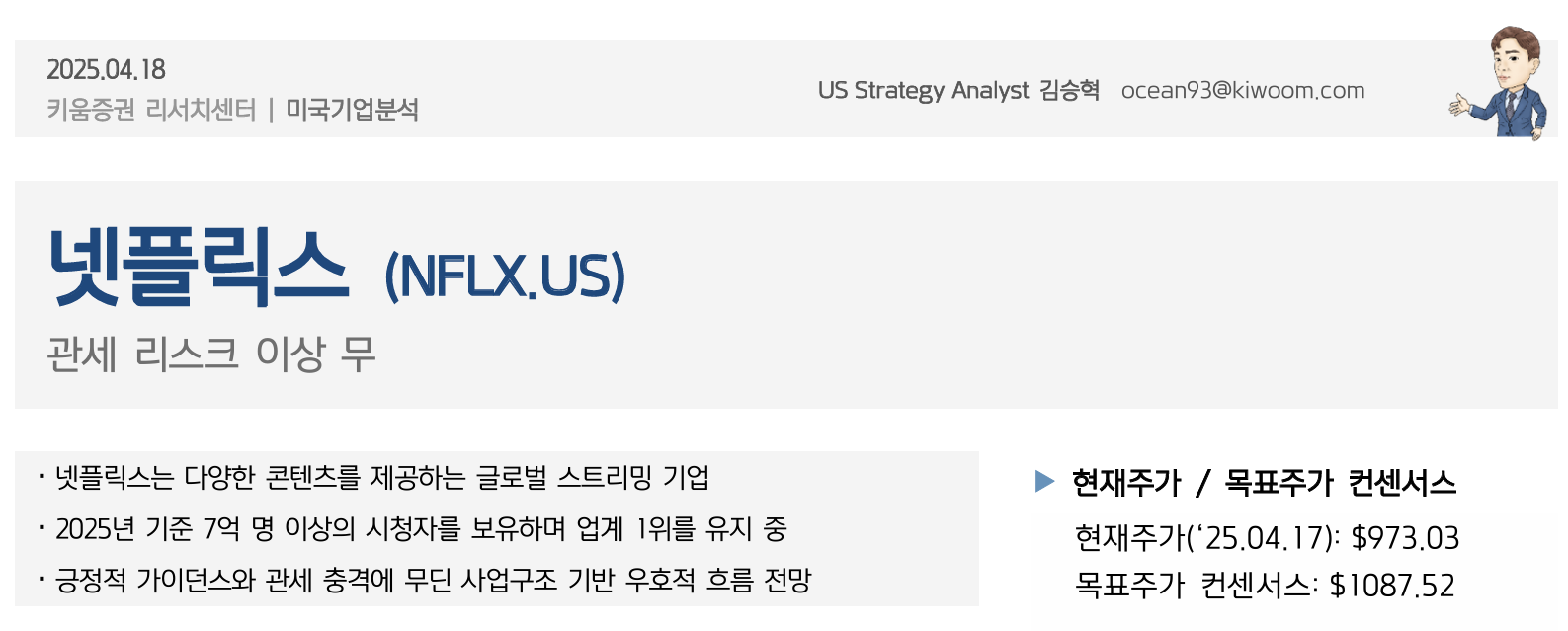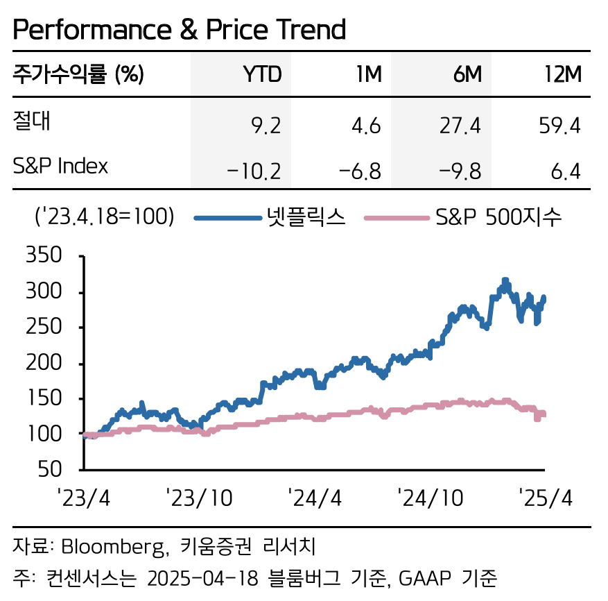 키움증권의 최신 넷플릭스 분석 보고서를 살펴보면, 현재 글로벌 스트리밍 업계를 선도하는 넷플릭스가 관세 리스크와 시장 불안에도 불구하고 탄탄한 실적과 성장세를 보이고 있습니다