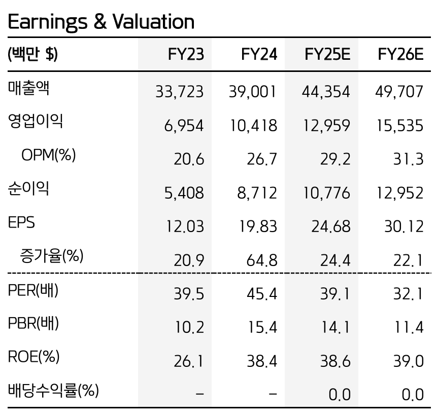 광고 사업 확장, 글로벌 성장, 가격 결정력을 통해 향후 2-3년간 연평균 20% 이상의 EPS 성장이 예상됩니다. 특히 관세 우려와 같은 경제적 불확실성 속에서도 안정적인 성장이 기대되는 만큼, 장기 투자자들에게 매력적인 투자처가 될 것으로 보입니다