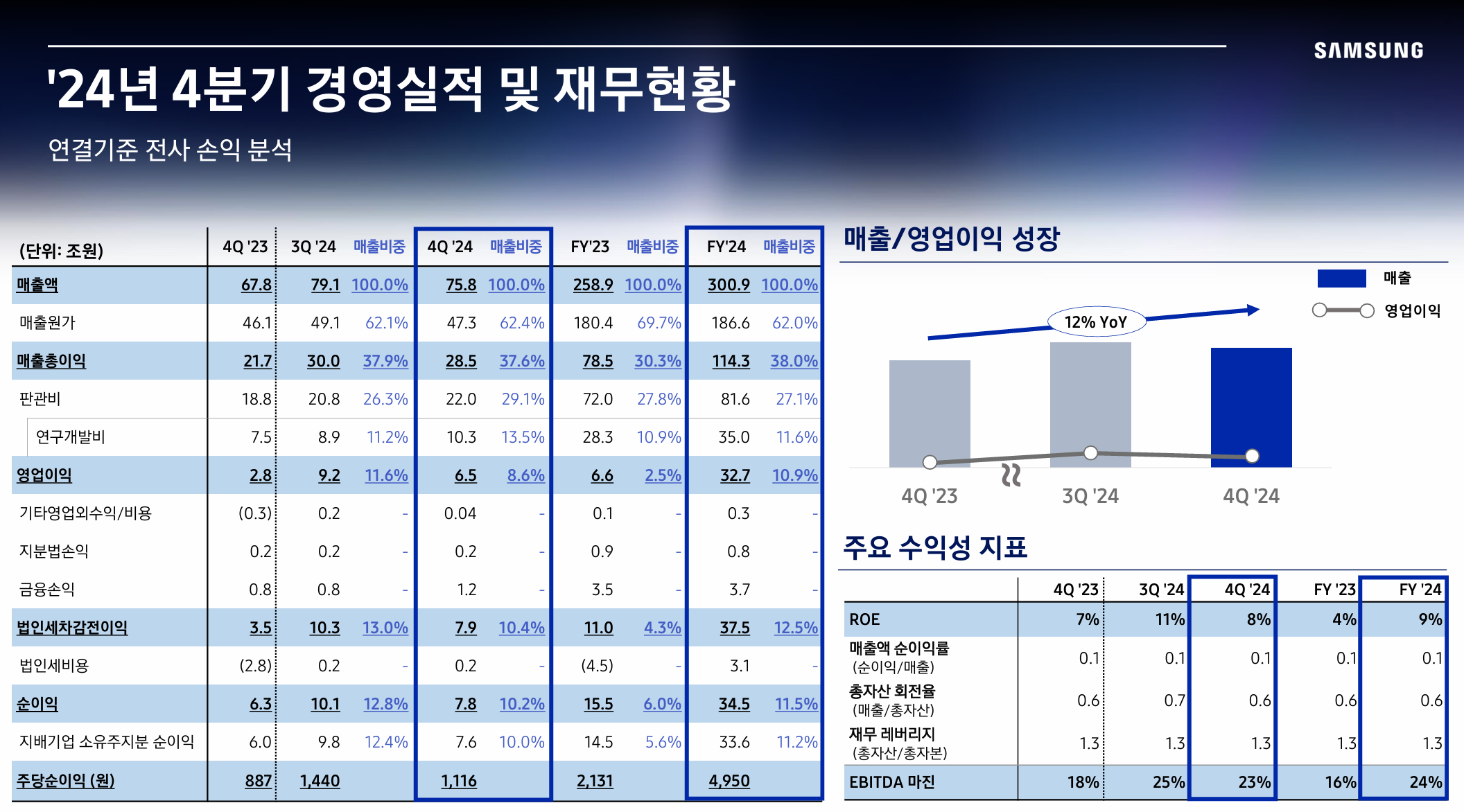 - 2024년 4분기: 매출 75.8조원, 영업이익 6.5조원 기록