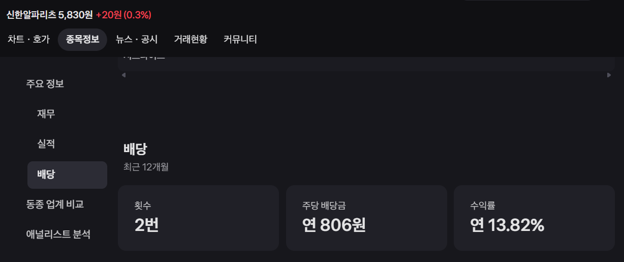 - 배당 주기: 3, 6, 9, 12월말 결산