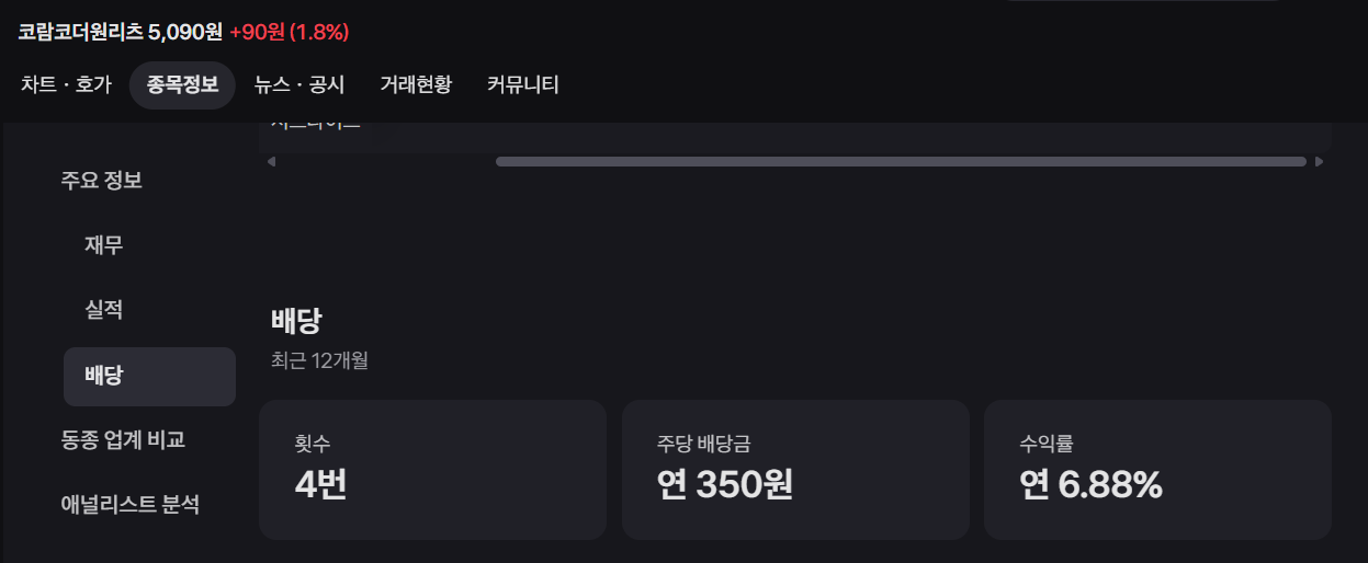 - 최근 배당금: 주당 173원 (2025년 3월말 결산, 전년 대비 73.05% 감소)