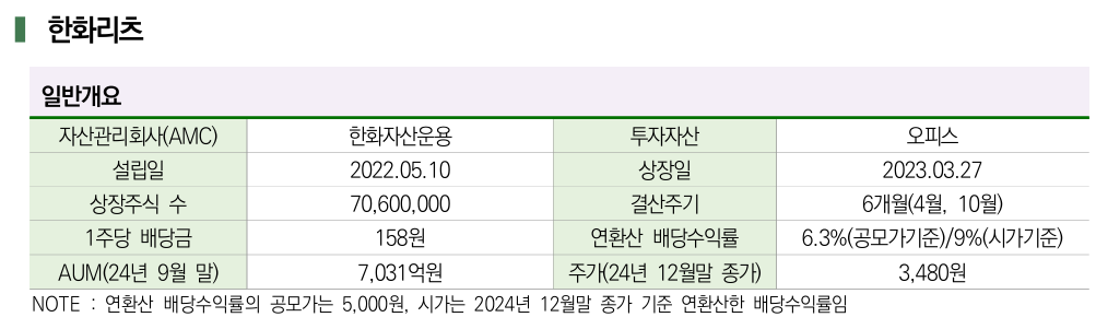 - 케이탑리츠: 여의도 케이타워, 강남 프라임 오피스 보유, 핵심 상권의 오피스 임대료 상승 수혜 기대