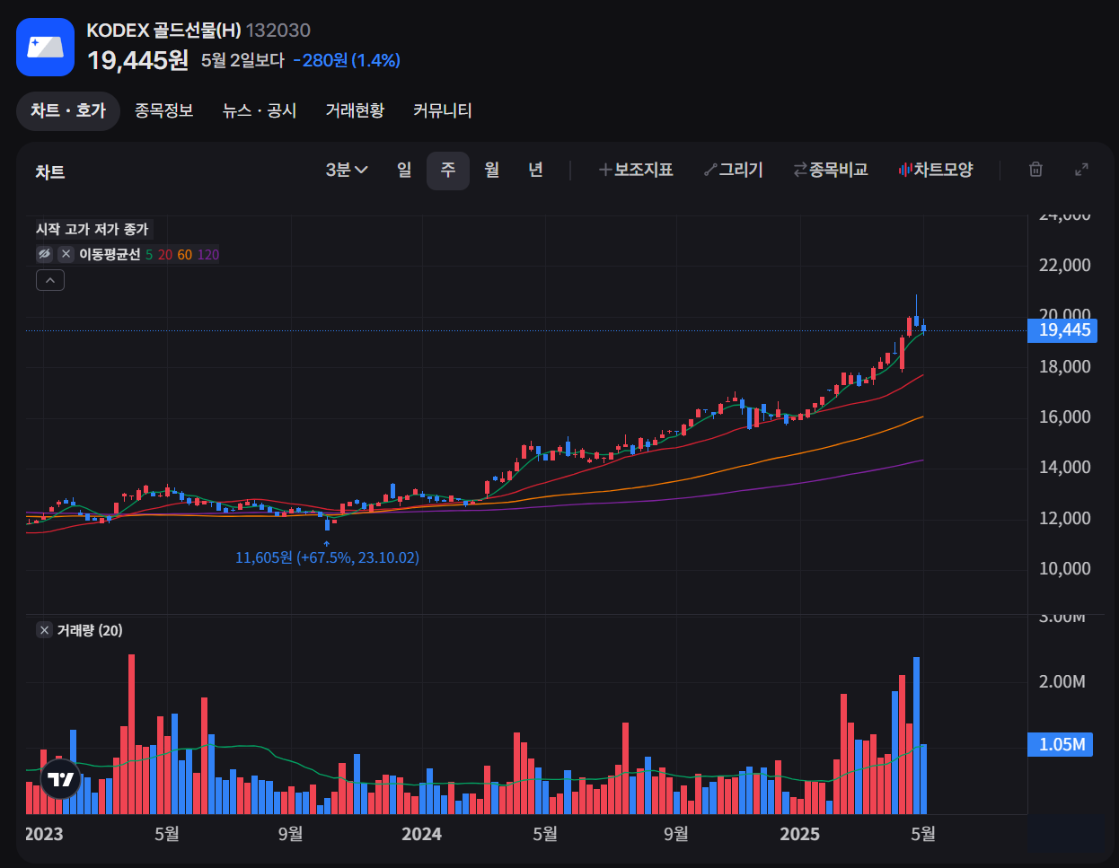 - KODEX 골드선물(132030): 금 선물 가격을 추종하는 ETF