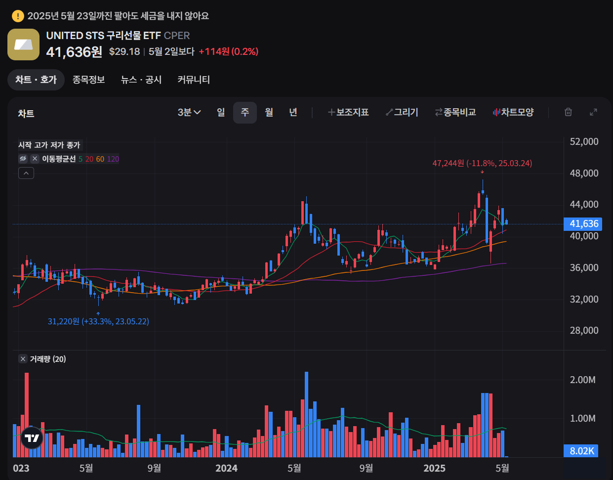 - 추적 오차 발생 가능(ETF가 원자재 가격을 완벽히 반영하지 못할 수 있음)