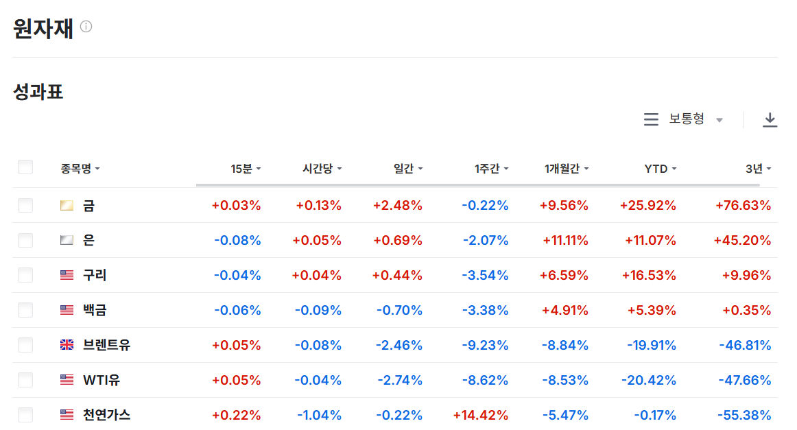 - 원자재 전반: 2025년 원자재 시장은 글로벌 경기 둔화와 달러 강세로 인해 대체로 조정 국면을 이어가고 있습니다