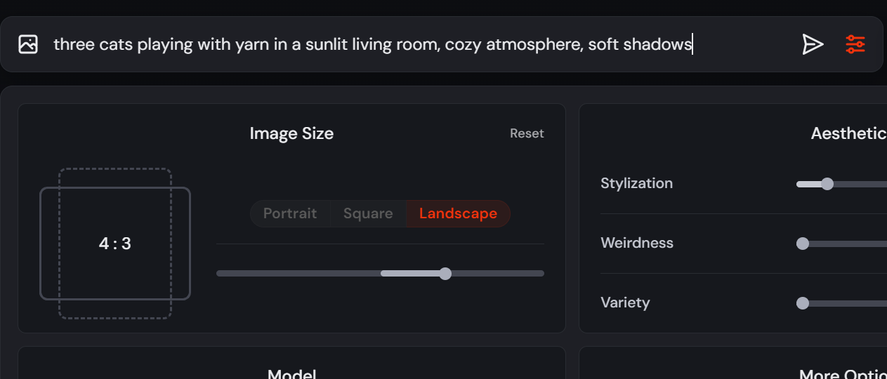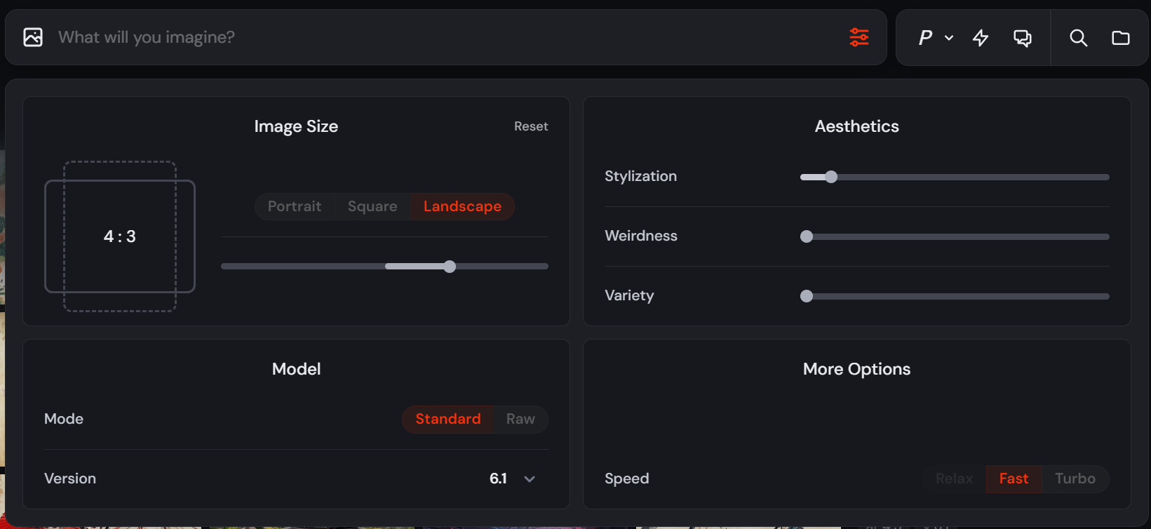 종횡비와 같은 항목을 조정하여 이미지를 원하는 대로 맞춤 설정할 수 있습니다. 매개변수는 프롬프트 끝에 추가합니다