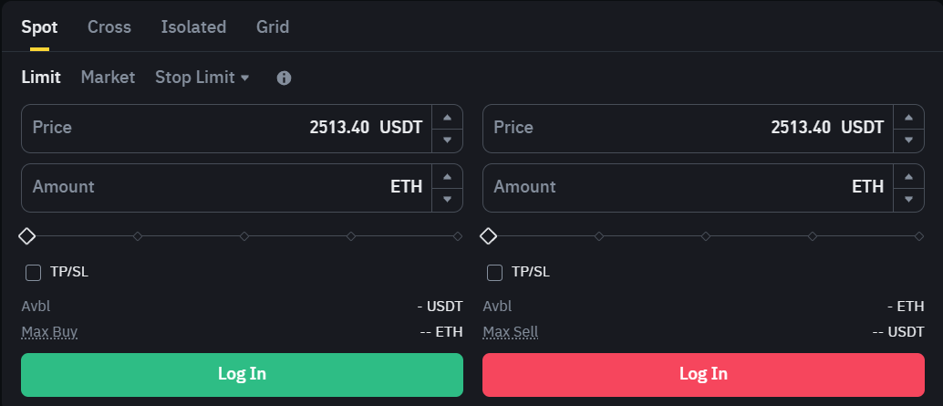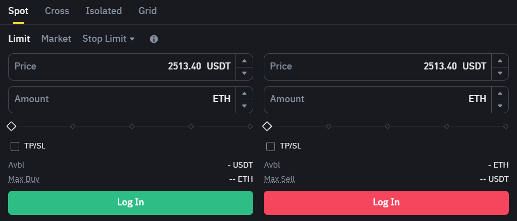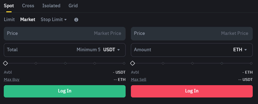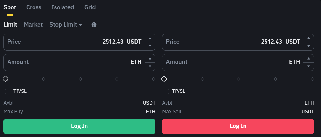 - 차트 아래에서 구매 및 판매 주문을 생성할 수 있습니다. 하지만 그러기 위해서는 먼저 스팟 지갑에 자금을 입금해야 합니다