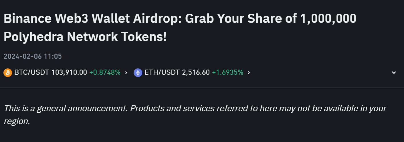 - 바이낸스 Web3 지갑과 연결된 제3자 Web3 프로젝트의 에어드롭에 초점
