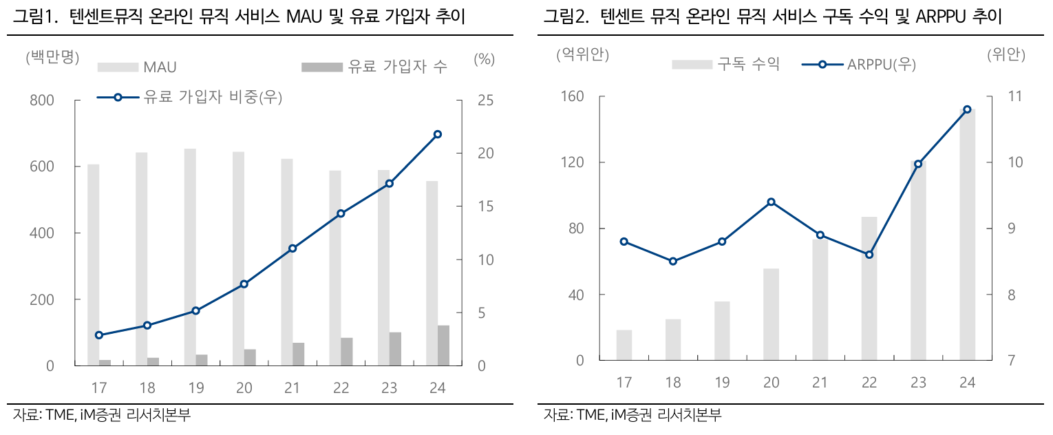텐센트 그룹의 광고 시스템 및 AI 기술을 기반으로 광고 사업 최적화를 진행 중이며, 무료 사용자 역시 광고, 굿즈, 디지털 앨범 판매 등을 통해 수익화하고 있습니다. 이는 향후 마진 확대에 기여할 것으로 예상됩니다