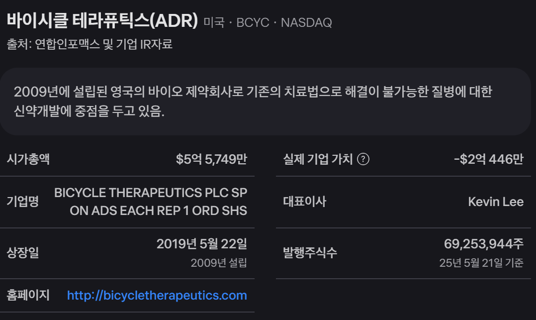 2009년 설립된 생명공학 기업으로, 현재 나스닥에 상장되어 있으며(티커: BCYC) 영국 케임브리지에 본사를 두고 있습니다