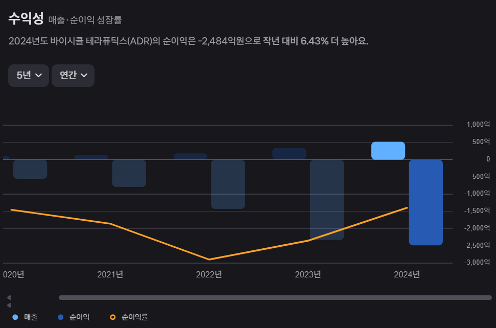 회사는 아직 수익을 내지 못하고 있으며, 연간 매출은 증가하고 있지만 영업 손실도 확대되고 있는 추세입니다