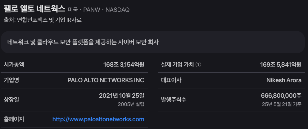 팔로알토 네트웍스는 미국 나스닥에 상장된 글로벌 사이버보안 기업으로, AI 기술을 접목한 보안 솔루션으로 주목받고 있습니다