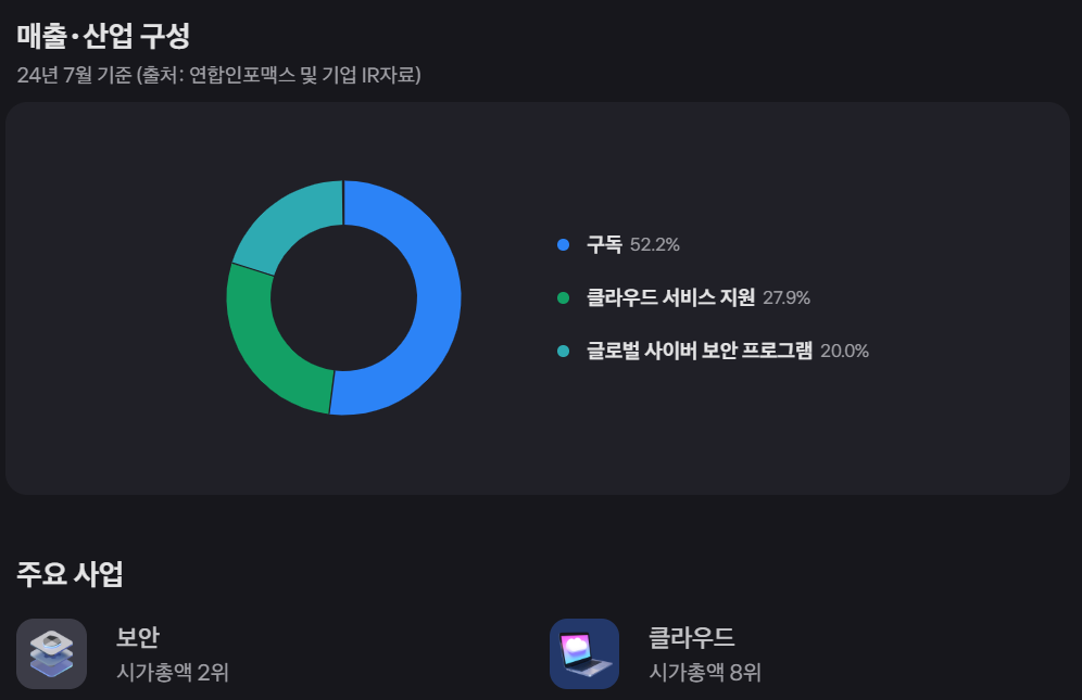 - '플랫폼화' 계약을 통해 여러 보안 서비스를 통합 제공하는 전략으로 고객 확보 및 유지에 성공하고 있습니다