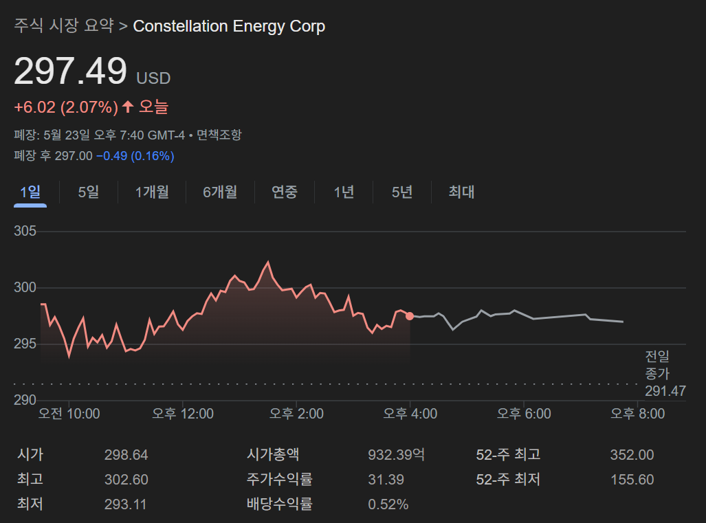 - 기존 대형원전 운영사: 콘스텔레이션에너지(CEG.US)