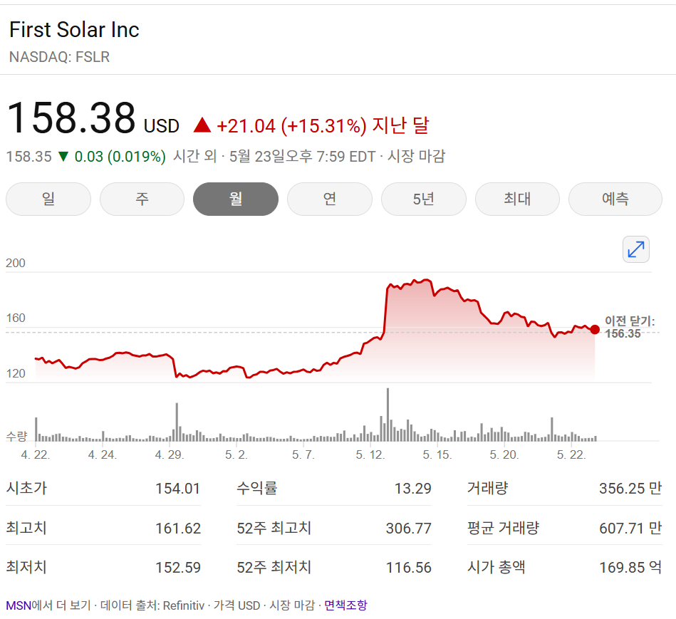 한화솔루션을 비롯한 국내 태양광 기업들은 단기적으로 부정적 영향을 받고 있습니다. 5월 23일 한화솔루션은 11.41% 급락했으며, 씨에스윈드(-12.75%), OCI홀딩스(-3.55%) 등도 동반 하락했습니다