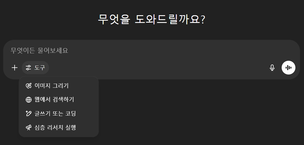 파일 업로드는 채팅 입력창 옆의 도구 아이콘을 통해 간단히 할 수 있으며, 이미지 생성은 일반 텍스트 명령어로 요청하면 됩니다. 음성 모드는 마이크 아이콘을 탭하면 즉시 활성화되어 자연스러운 음성 대화가 가능합니다