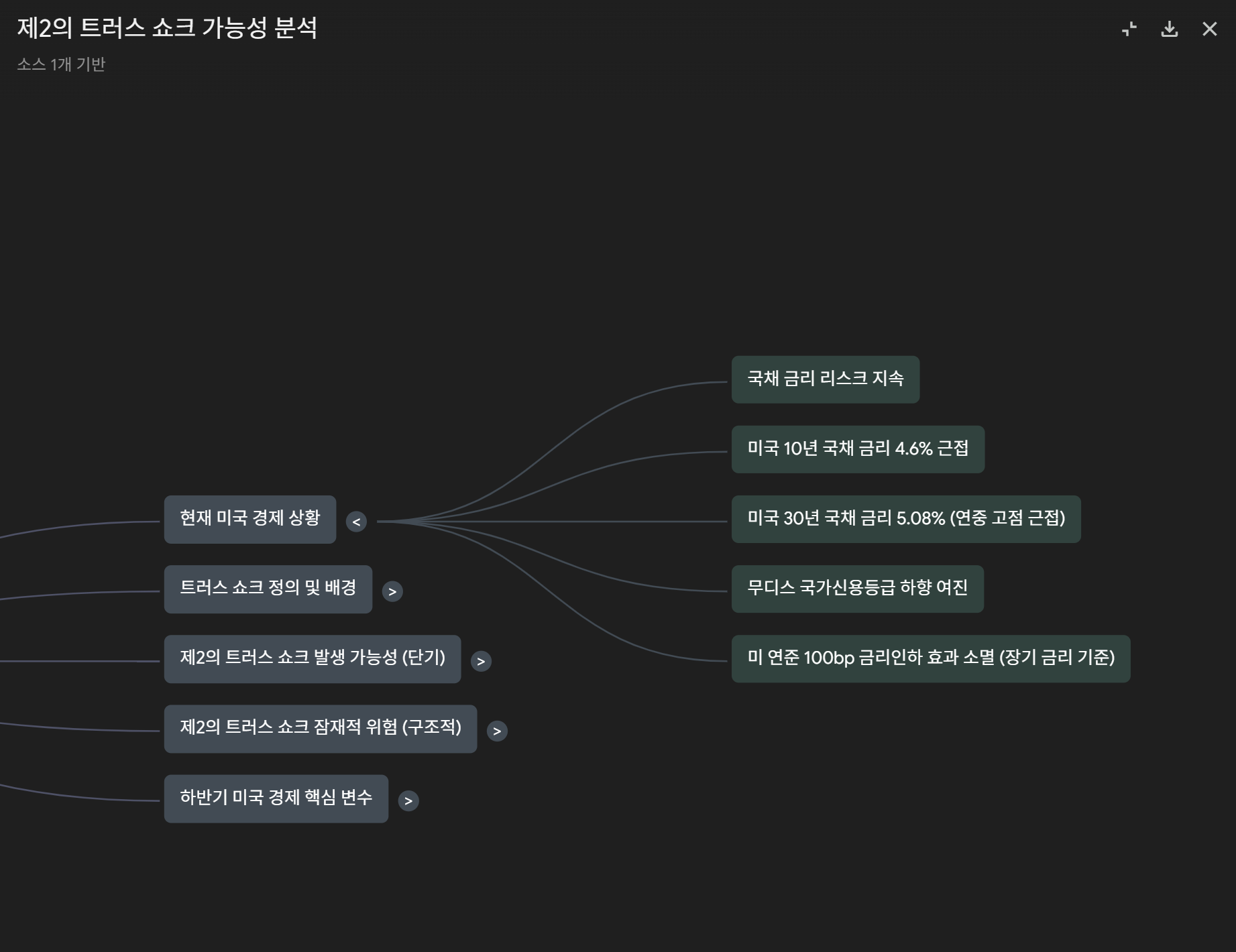 5. 인터페이스의 하단과 오른쪽에서는 문서에 대한 마인드맵, 문서 내용에 대한 타임라인등을 생성할 수 있습니다