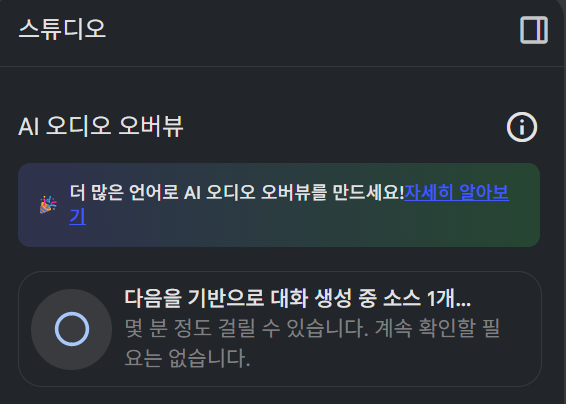 6. 인터페이스의 오른쪽 상단에서는 해당 문서를 기반으로 두명이 대화하는 음성까지 생성가능합니다