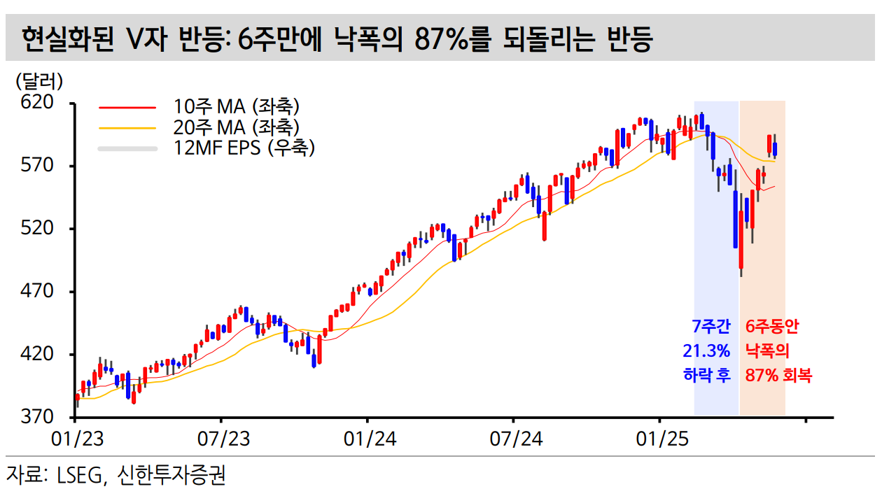 여전한 거시경제(국가 경제 전반) 불확실성에도 불구하고, S&P 500 지수는 단 6주 만에 직전 낙폭의 87%를 되돌렸죠. 이는 객관적인 펀더멘탈(경제 기초 체력, 기업 실적 등) 개선 속도보다 훨씬 빨랐습니다