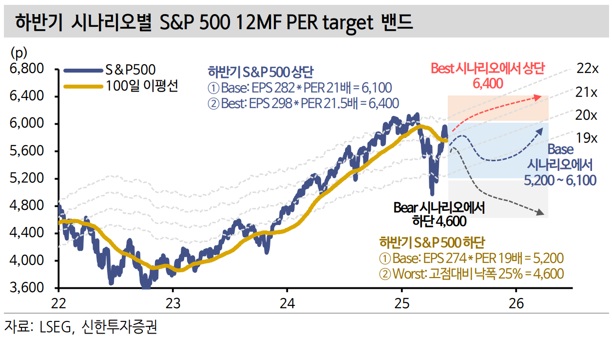 과거 V자 반등 이후 경험처럼 전고점 부근에서 잠시 쉬어가는 과정이 예상되므로, 6월보다는 7~8월이 향후 상승 기회를 공략하기에 더 적합할 수 있습니다. 보고서는 6월에는 중립적인 스탠스(관망세)를 가져갈 것을 제시합니다