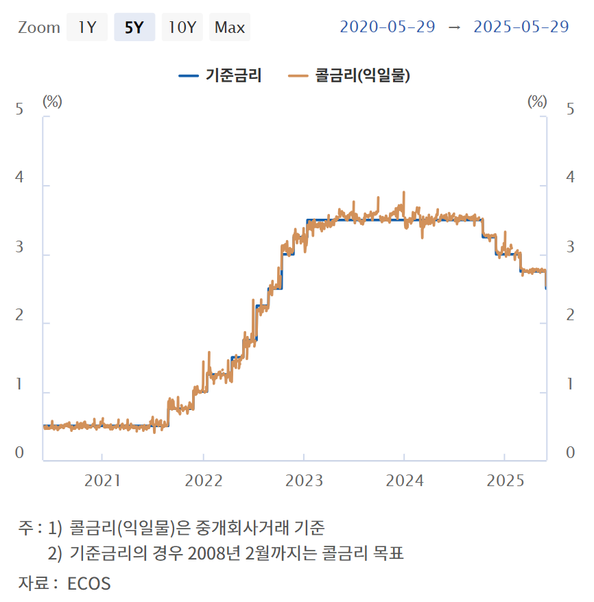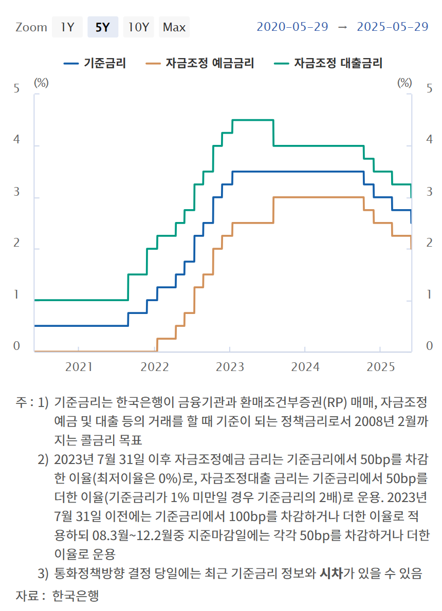 한국은행의 5월 29일 금리 인하 결정으로 한미 기준금리 격차가 2.0%포인트까지 확대되었습니다
