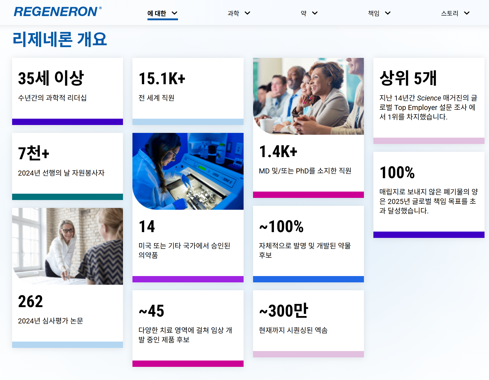 시장 지위: 안과질환(EYLEA), 아토피 피부염(Dupixent), 암 치료(Libtayo) 등 주요 치료 영역에서 선도적 지위를 확보하고 있습니다