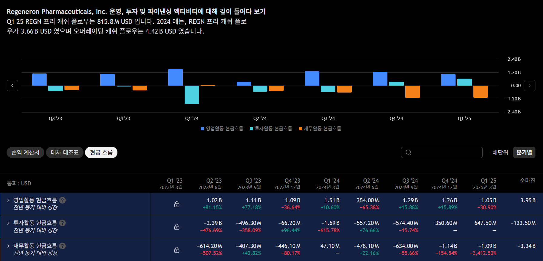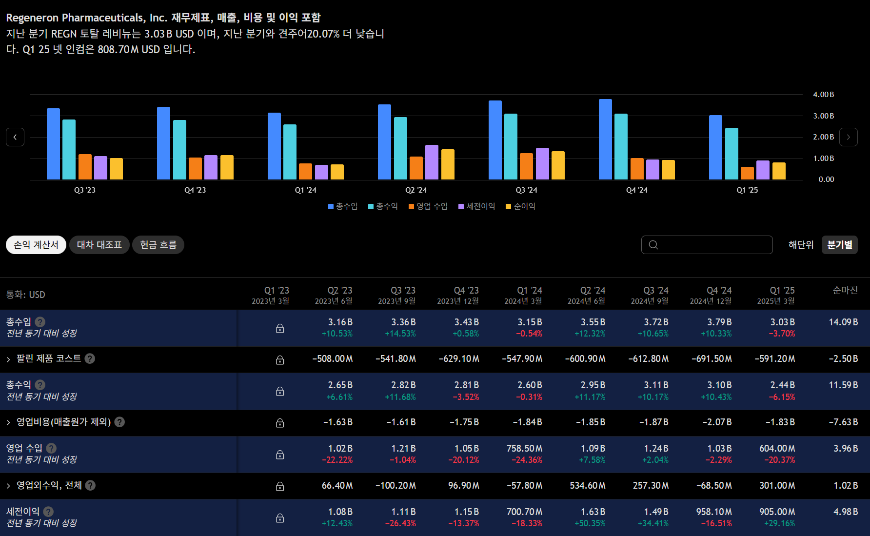 Regeneron의 재무 성과는 2021년 코로나19 관련 특수 상황 이후 안정적인 회복세를 보이고 있습니다