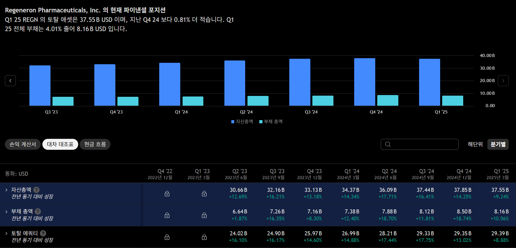Regeneron의 재무 건전성은 매우 우수한 수준입니다